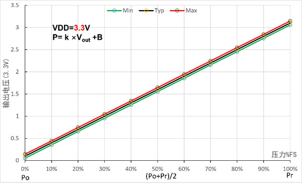 | Pression de sortie maximale (0℃ à 85℃)@ VS = 3,3 V | V OFS | 3.055 | 3.1 | 3.145 | VDC |